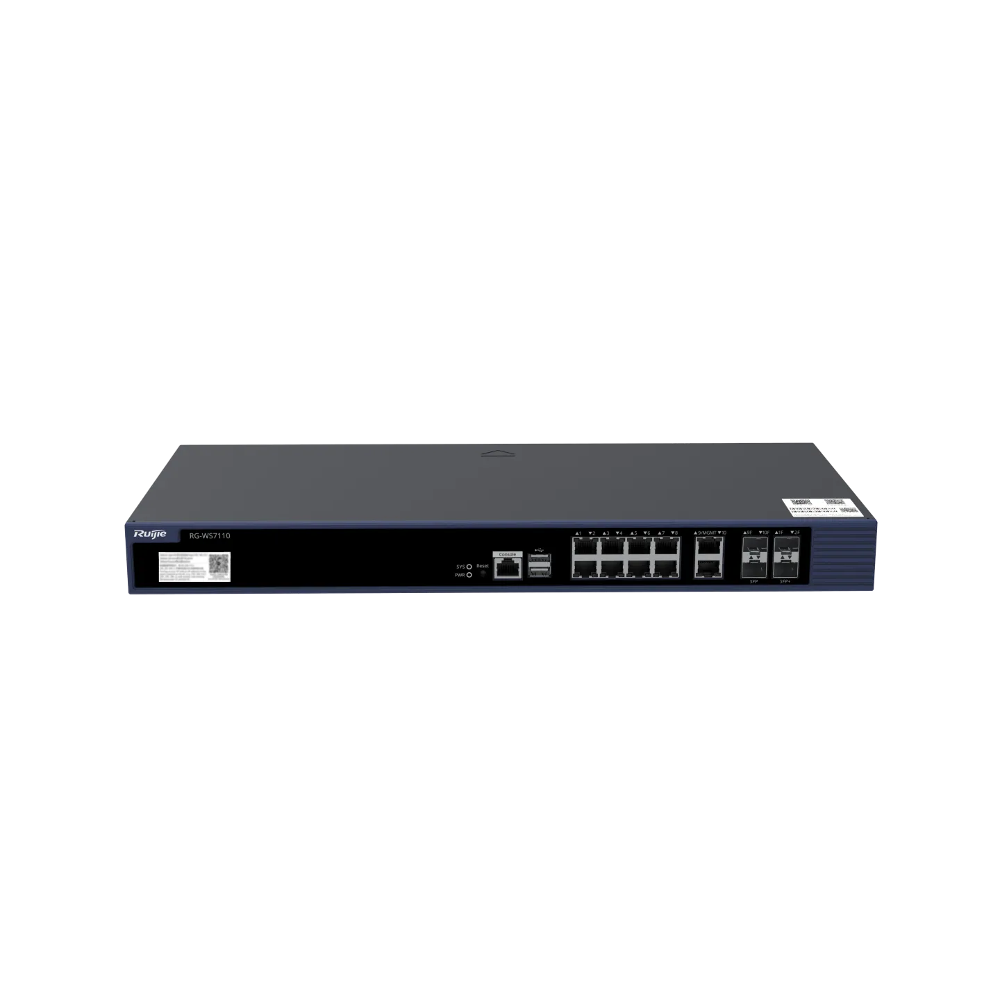 At its core, RG-WS7110 offers a forwarding capacity of 10 Gbps, enabling it to aggregate traffic from numerous APs without performance bottlenecks. network-switch.com+1 It comes with 8 × 10/100/1000BASE-T ports, 2 × 1GbE SFP/RJ45 combo ports, and 2 × 10GE SFP+ ports — giving flexible connectivity and supporting high-throughput backhaul. Ruijie Networks+1